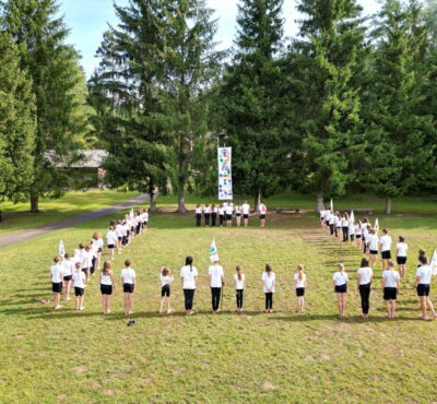 Jeder Tag beginnt wie immer mit Morgensport, der Morgenfeier und dem Frühstück, worauf es dann dem Tagdienstplan folgend weitergeht. Verbringen wir in den Tag im Wald? Spielen wir Flugscheibe oder Volleyball? Singen wir im Pavillon um die Wette?