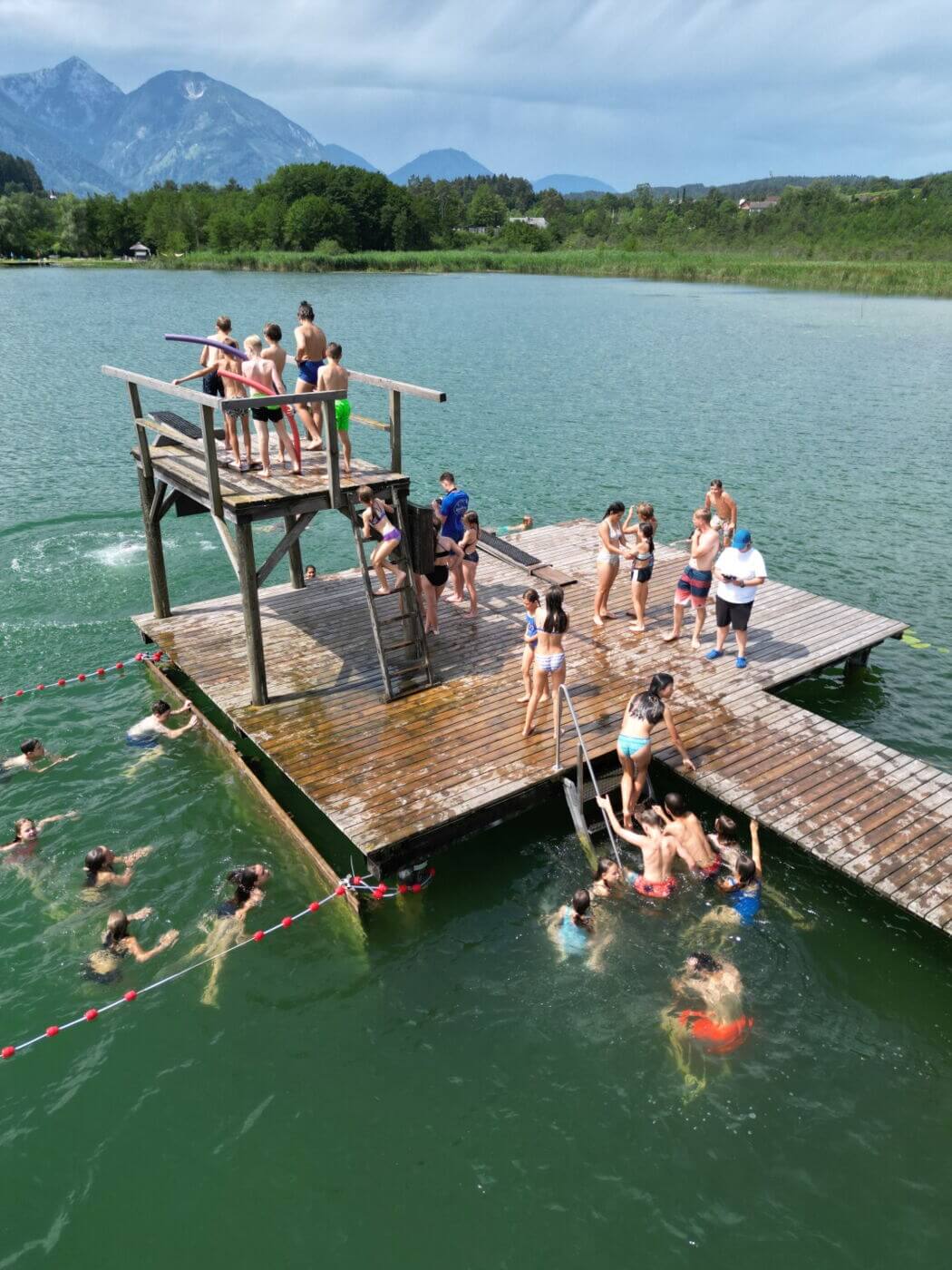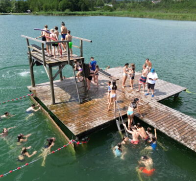 Jedes Jahr aufs Neue findet sich eine lustige und motivierte Vorturnergruppe, die völlig neue Spiele plant und uns Tag für Tag mit aufregenden Aktivitäten auf Trab hält. Von bekannten Programmpunkten wie Hugalele oder Räuber und Gendarm im Wald, über Lagerquiz und Lotto Totto, bis zum berühmt berüchtigten Orientierungsmarsch ist auch immer alles dabei! Natürlich dürfen auch die Singstunden und gemeinsamen Volkstanzfeste mit dem Jugendlager nicht fehlen. Die gelegentlichen Zimmerkontrollen und Liegestütz sind zwar ab und zu anstrengend aber nach einer Badezeit im Turnersee ist jede Sorge vergessen! Es gibt einfach nichts Schöneres als vom 3m-Turm ins Wasser zu springen und dabei den besten Ausblick auf den Hochobir zu genießen.
